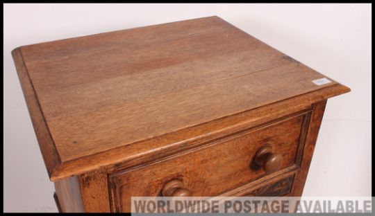 An early 20th century barley twist oak pedestal side cabinet. The upper body being raised on barleytwist legs with pad feet united by stretchers. H97 x W60 x D48cm