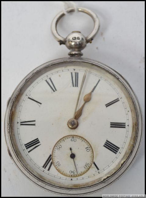 A Victorian silver hallmarked gentlemans pocket watch having enamel face with subsiduary seconds dials. London hallmarks for 1883.