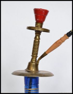 A Middle Eastern 20th century Hookah pipe from Syria, the glass bowl being hand painted