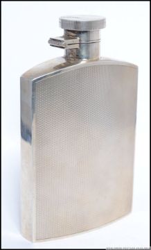 A good quality 13.5cm tall machine turned gentlemans hip flask with screw release hinged top, with Birmingham Assay dated for 1948 by makers Deakin & Francis Ltd 174.6g. H14cm