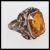 A 925 silver ring with large yellow faceted gem stone with foliate gallery and stylised shank. Weight 11.6g. Size