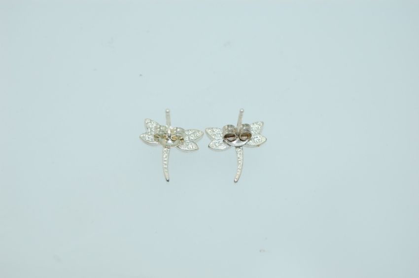 A pair of 925 silver earrings set with clear paste in the shape of dragonfly's with push post backs. Weight 1.5g