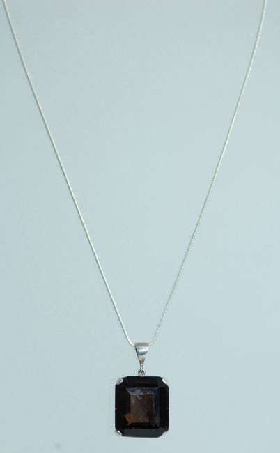 A large silver and smokey quartz pendant being claw mounted, contemporary silver chain. Total weight 17g