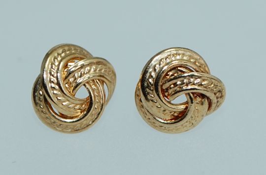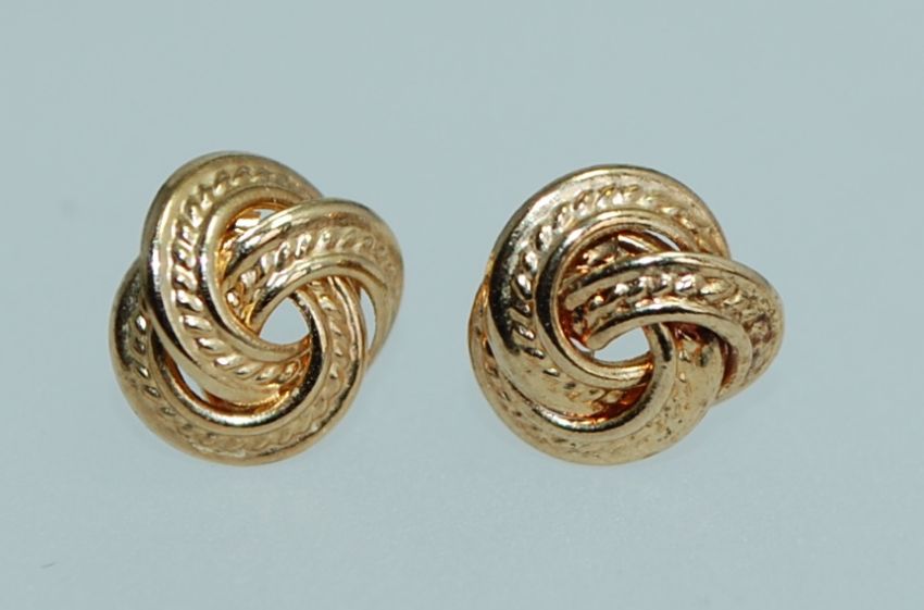 A pair of 9ct gold earrings in the form of a a celtic knot no backs. Weight .6g