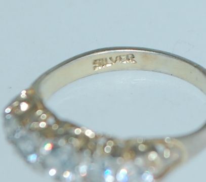 A vintage silver ring with 5 CZ in a gypsy setting marked silver. Size J. Weight 2.2g