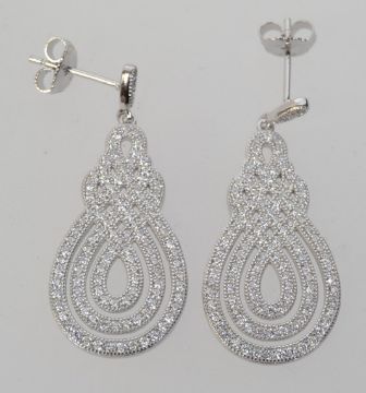 A pair of 925 silver Art Deco style earrings set with round cut CZ within an ever lasting knot design with pierced post backs.