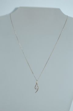 A 925 silver pendant necklace strung with an CZ set stylized wishbone pendant on a fine italian silver chain. Marked 925. Measures 18 inches. Weight 2.9g