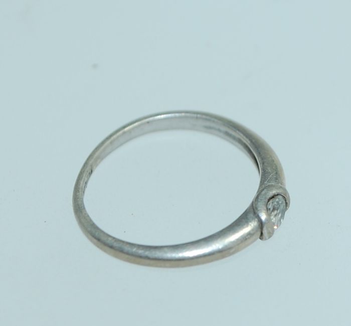 A 925 silver ring set with clear round cut stone marked 925 with leaping deer. Size I. Weight 1.4g