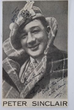 PETER SINCLAIR: An original ' Cock Of The North ' actor Peter Sinclair signed photograph. Autograph to lighter portions, inscribed in fountain pen ink. Postcard sized black and white magazine photograph. POSTAGE: Tracked UK postage £3.99+VAT, combined rates available on multi-lot purchases. Europe from £6.99+VAT, USA from £15.99+VAT. ALL DESTINATIONS AVAILABLE, PLEASE ASK FOR A QUOTE, SEE WEBSITE FOR DETAILS: www.eastbristol.co.uk.