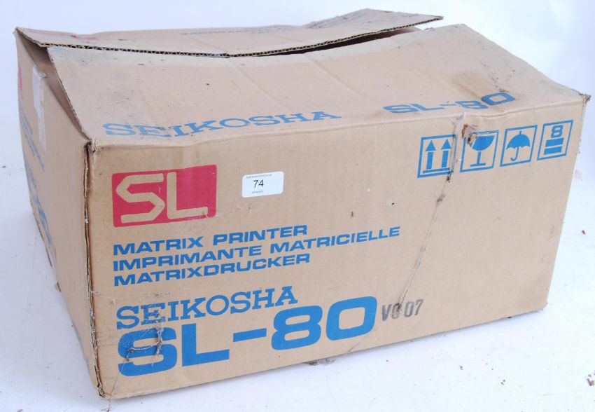 SEIKOSHA: An original Seikosha SL-80VC07 matrix printer. Appears unused in original box. All items came from a private collection of vintage SEGA , Nintendo , PlayStation , Atari , Game Boy , Game & Watch and other game consoles. All lots have been tested and do appear to work - however, buyers are reminded to satisfy themselves as to condition prior to bidding and all items are still 'sold as seen.' Worldwide postage is available on all lots - UK £15.99+VAT, Europe from £22.99+VAT, USA from £30+VAT - . Please see website for full postage quotes.