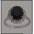 A hallmarked 750 18ct white gold ring set with a large oval cut central sapphire surrounded by a halo of 18 1pt diamonds within a prong cathedral setting. Size N , Weight 4.6g.