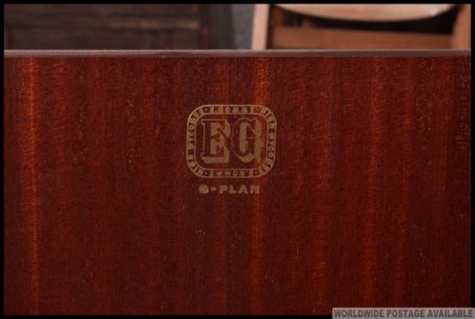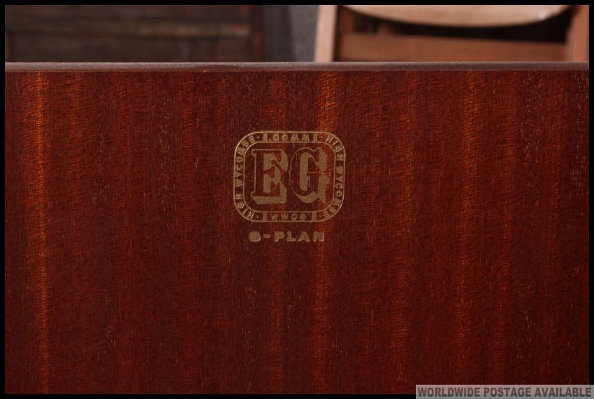 A 1960's Ernest Gomme for G-Plan tola wood tallboy chest of drawers cabinet. Raised on plinth base with linen cupboard under drawers above. H134 x W76 x D47cm