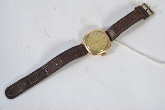A vintage mens Ingersoll Rolled gold watch with brown leather strap. Marked inside back Ingersoll Rolled Gold 10 Foreign. Total weight 35g.