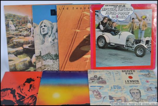 A collection of vinyl 12" album records to include Led Zepplin 'House of The Holy ' (Uk First Press ), Remasters ( Triple LP ), Deep Purple, ' In Rock ', Geno Washington, Slade, Sad Cafe, Lennon, The Batchelors etc