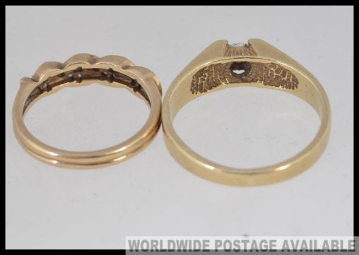2 9ct gold and diamond rings to include illusion set single stone ring along with diamond encrusted rope twist ring. Total weight 6.6g / Size T & N.5 respectively