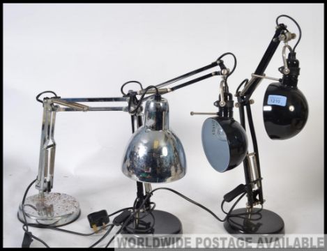 3 20th century anglepoise desk lights to include a good factory style black example, one white and another