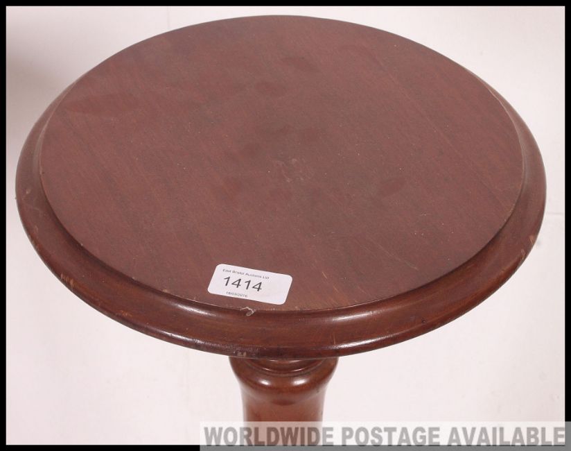 Two Victorian mahogany tripod pedestal wine table. The base raised on shaped 3 splayed legs with turned column and terraced top above along with a Antique Regency style mahogany Canterbury. Raised on turned legs with brass castors. Single drawer under sectioned top above