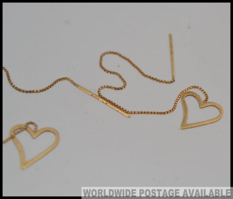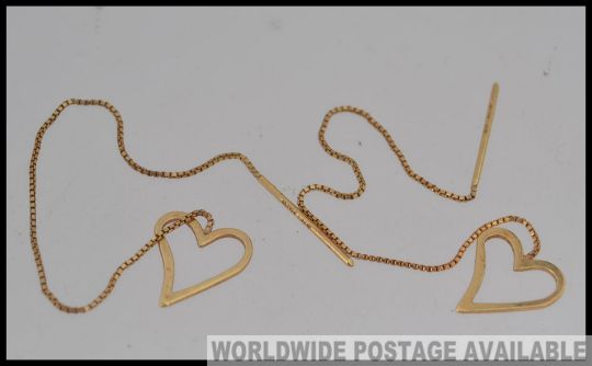 A pair of Italian 9ct gold heart chain drop earrings marked 375 Italy. Measures 11cms.