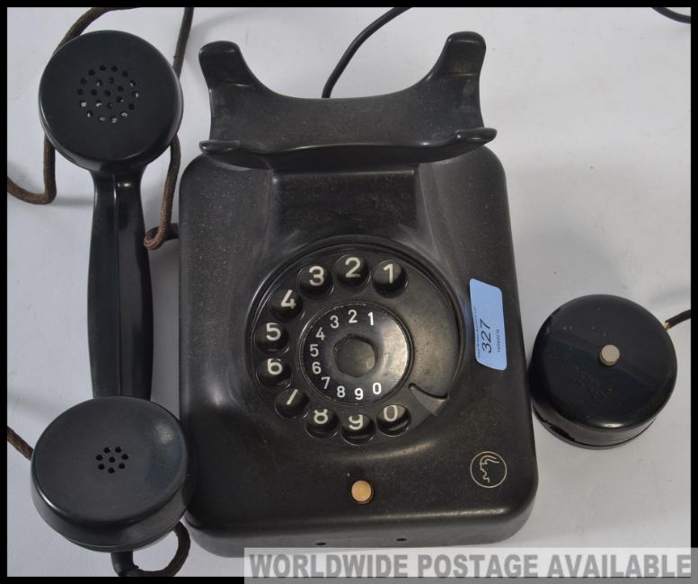 A vintage mid 20th century German bakelite telephone, having a rotary dial