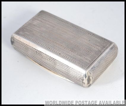 An early 20th century continental engine turned silver snuffbox being chase decorate. Total weight 48.6g
