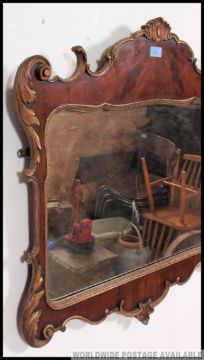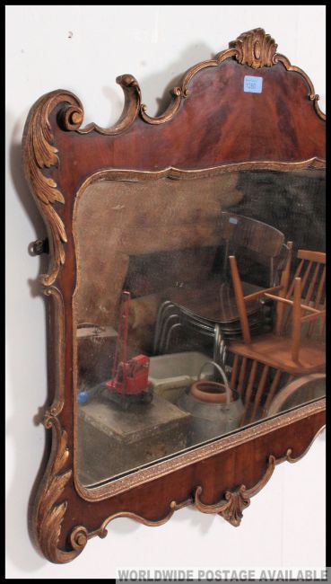 A Victorian flame mahogany and gilt rococo pier mirror. The rectangular mirror plate in rococo frame with scrolled edges finished with gilded details