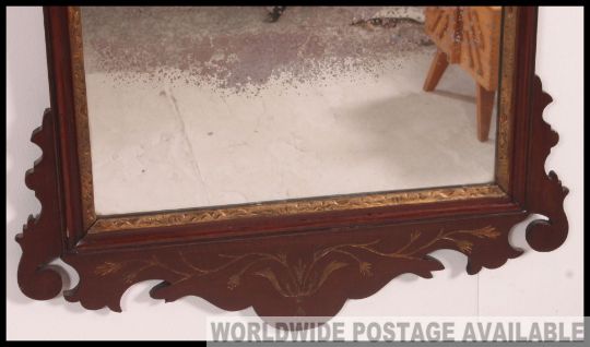 An early 19th century Georgian pier mirror. the central mirror plate with mahogany scrolled frame having pierced gilded crested eagle top