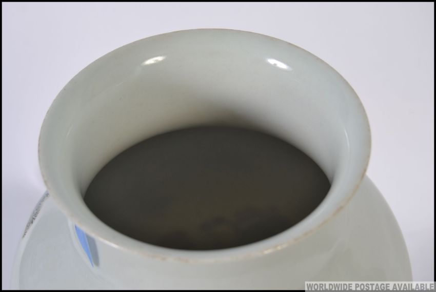 A Chinese large famille rose vase with unusual court scenes of people and storks / cranes. The base with ochre red character marks to the base H33cm