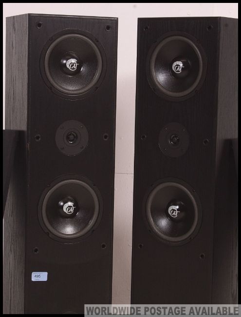 A pair 20th century tall ebonised German made CAT speakers, model no CAT LEB - 401 3 Wege - Bassreflex