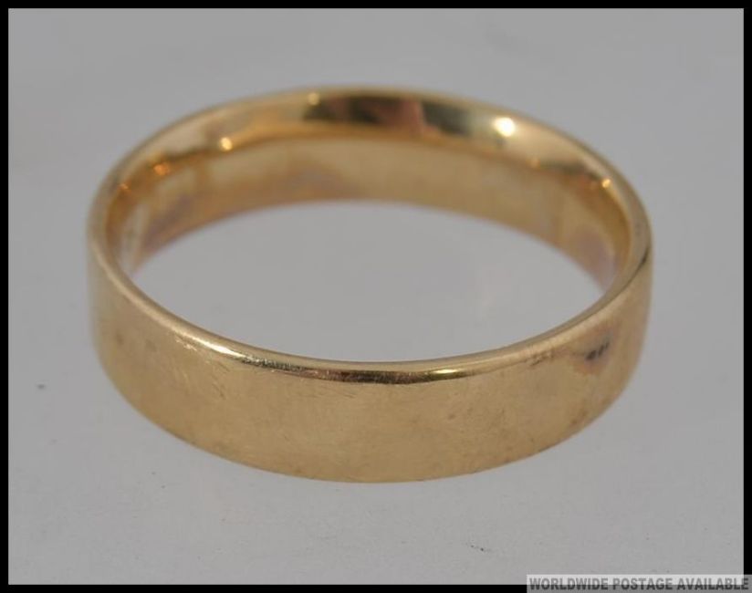 A gentlemans 9ct gold band ring, weight 2g / Size x.5