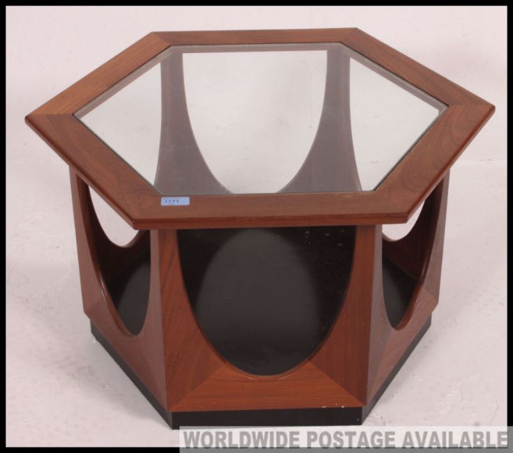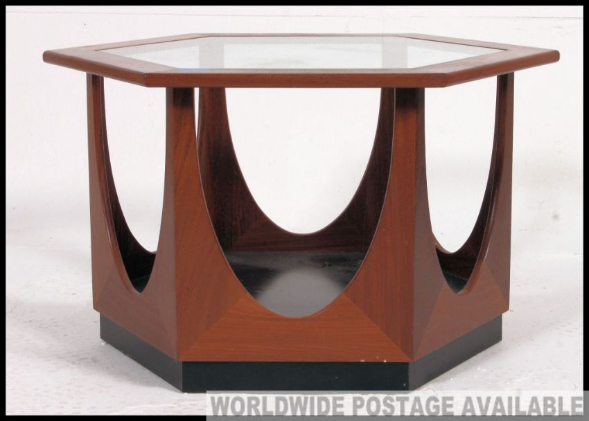 Fantastic original G Plan 'Hexagon' coffee table designed by V B Wilkins in 1967. Glass top and solid base.