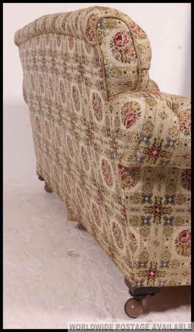 A stunning Victorian / Edwardian Chesterfield style button back sofa, still retaining original material, raised on later casters