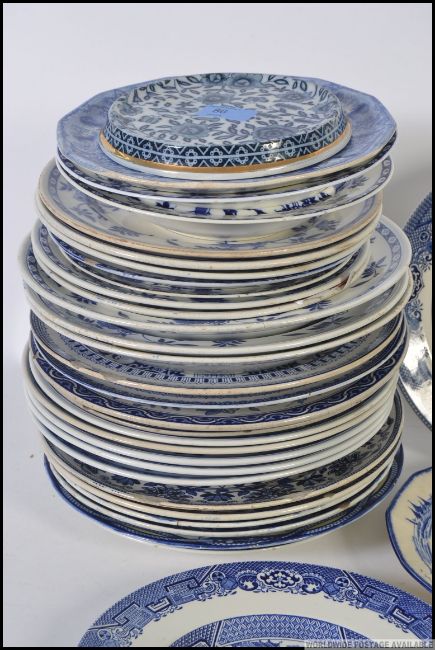 A large collection of blue and white ceramics to include Ridgway and many others circa 19th century
