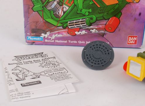 TEENAGE MUTANT NINJA TURTLES: An original vintage retro Playmates made Teenage Mutant Hero Turtles UK release Cheapskate action figure playset. Within the original box, with Quiz Jokebook and instructions. Retains its original interior packaging. Complete.