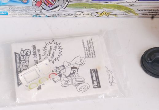 TEENAGE MUTANT NINJA TURTLES: An original vintage retro Playmates made Teenage Mutant Hero Turtles UK release Turtlecycle action figure playset. Within the original box, with Quiz Jokebook and instructions. Retains its original interior packaging.