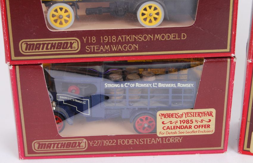 MATCHBOX CODE 3: A good collection of 4x Code 3 (custom) Matchbox Models Of Yesteryear boxed diecast models. Y-18 Blue Circle Cement, Y-27 Strong & Co Of Romsey, Y-27 J. Foster and Y-18 Roslyn Promotions Broady Ltd. Each with gold label details to box, some limited edition.