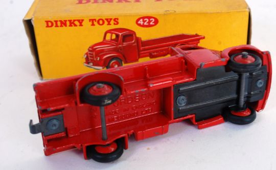 DINKY: An original vintage Dinky Toys 422 Fordson Thames Flat Truck diecast model truck. Red. Within a good original box. NOTE: From a superb single-owner small collection of original Dinky diecast model cars / vehicles. Each model is generally very near mint / mint. Very few chips to any model. Boxes are also generally near mint to mint. Buyers are still reminded for the need to satisfy themselves as to individual condition prior to bidding, and this statement is only a general overview of the entire collection.
