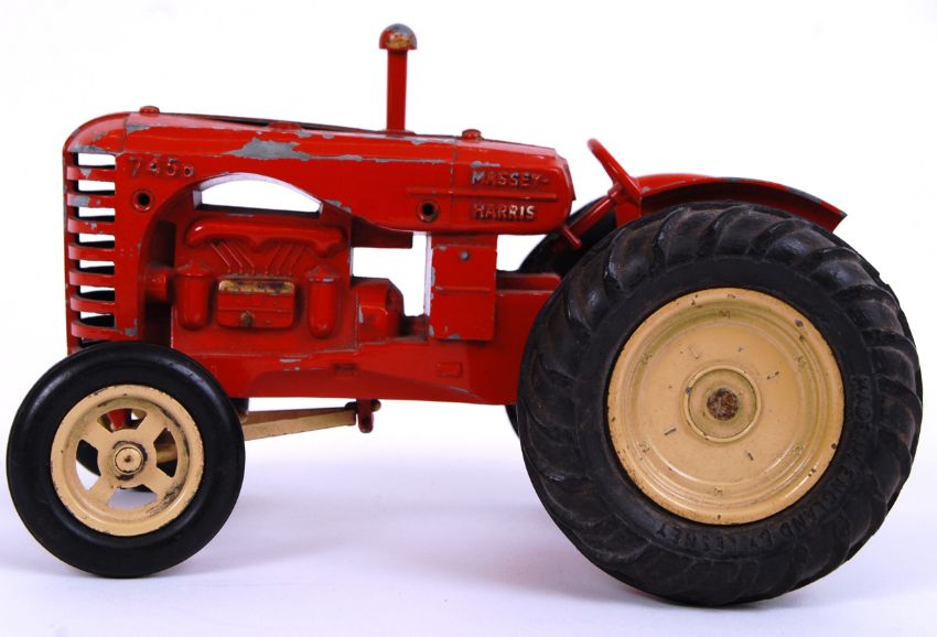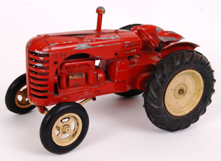 LESNEY MASSEY HARRIS: An original large scale Lesney made diecast model Massey Harris tractor. In red, with cream hubs. 13cm tall.