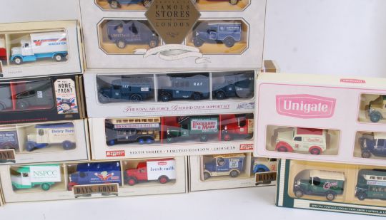 LLEDO: A collection of 11x Lledo diecast model gift packs / sets. Mostly trio model sets, but also some others. To include: Famous Stores, Castrol Collection, Exchange & Mart, Reach For The Sky and others.