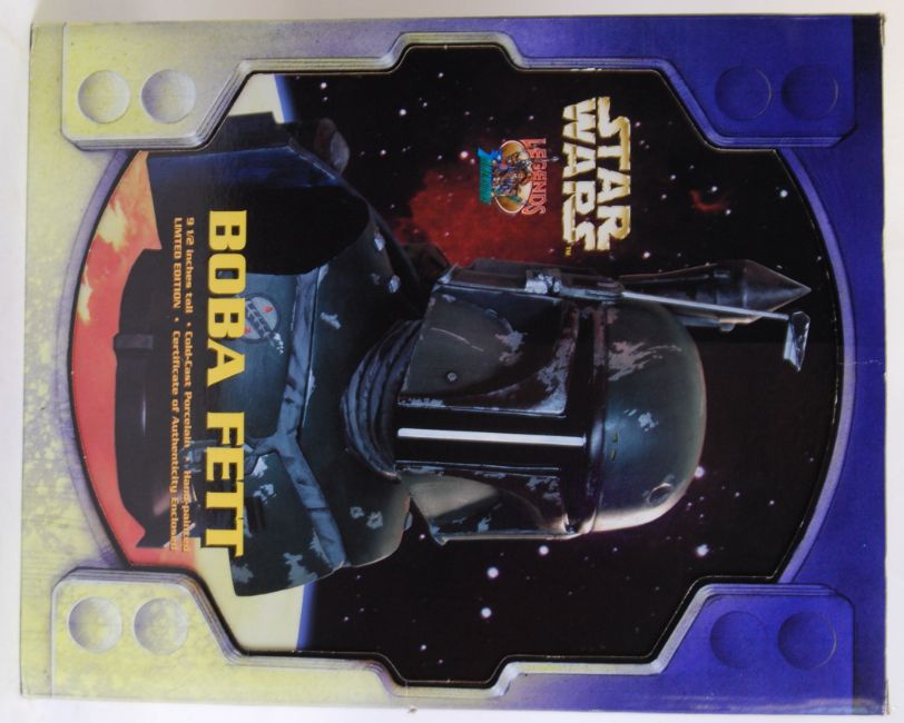 STAR WARS: A fabulous Star Wars Legends Dimensions ' Boba Fett 9.5" Bust ' cold-cast porcelain, hand painted and limited edition. Mint, in original box. No damage to bust, and comes with all interior packing. The certificate being signed by Boba Fett actor Jeremy Bulloch. Very nice piece.