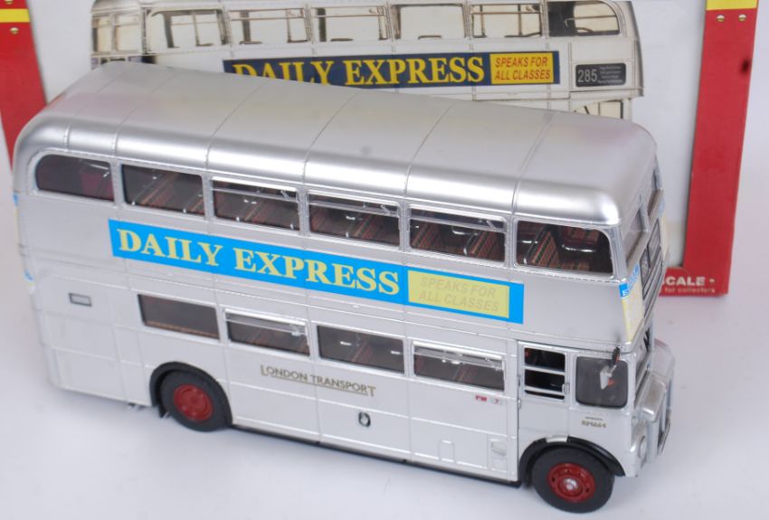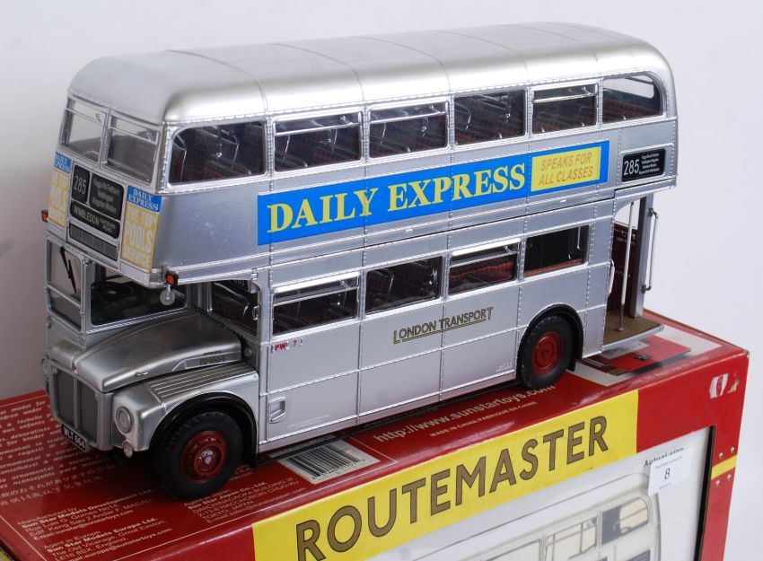 SUN STAR BUS: An original well detailed Sun Star 1:24 scale diecast model Routemaster Bus ' Daily Express Silver Lady ' RM664. Highly detailed model, within the original box. Appears unused. With certificate etc.