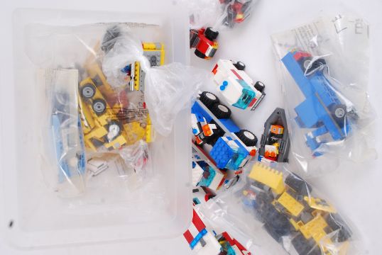 LEGO: A collection of assorted loose Lego, mostly part made / fully made models to include various themes, bricks and sets etc. Some minifigures. Some sets bagged. Most appear to be custom models.