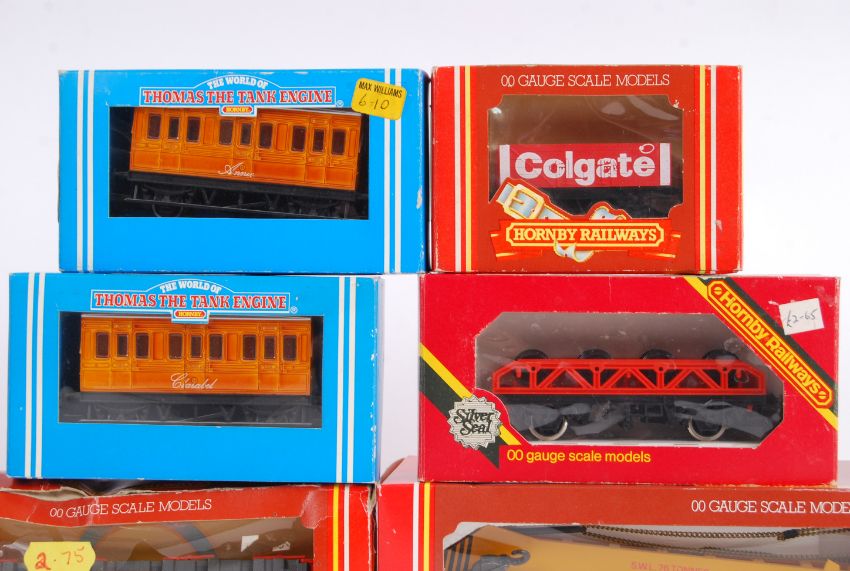 HORNBY: A collection of Hornby 00 gauge items - 2x World Of Thomas The Tank carriages and R749 crane etc. x6 items in total.