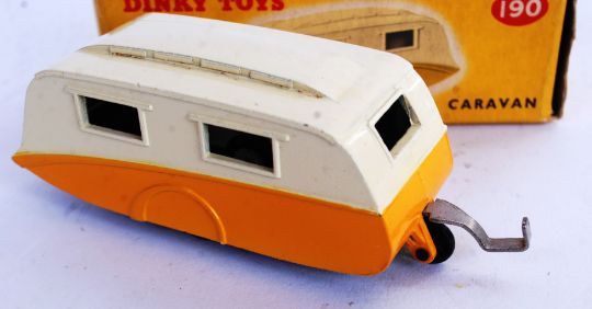 DINKY: An original vintage Dinky Toys 190 Caravan diecast model. Two tone cream and yellow. Within a good original box. NOTE: From a superb single-owner small collection of original Dinky diecast model cars / vehicles. Each model is generally very near mint / mint. Very few chips to any model. Boxes are also generally near mint to mint. Buyers are still reminded for the need to satisfy themselves as to individual condition prior to bidding, and this statement is only a general overview of the entire collection.