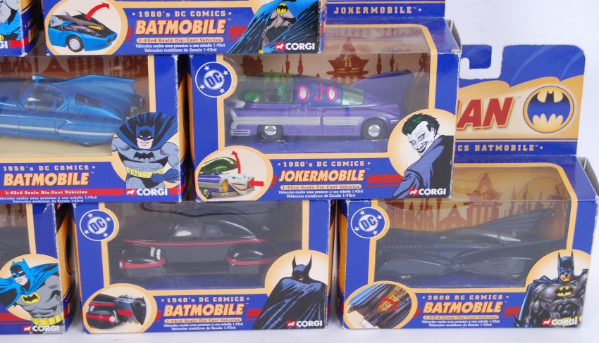 BATMAN: A great full set of 10x Corgi Batman edition diecast models. All in original boxes. Full set, to include various Batmobiles, Jokermobil etc. Each within the original display boxes.