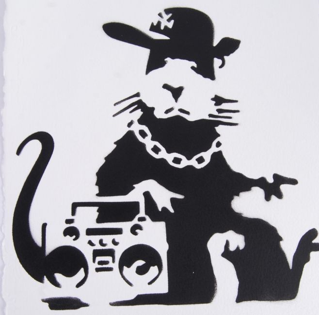 GRAFFITTI: An original piece of artwork, spray graffiti image of a 'gangsta rat' with boombox. On a shabby torn piece of card. Allegedly obtained from Dismaland as part of the hidden ' Free Art ' notion. Various pieces of artwork would be hidden around Dismaland for members of the public to find and keep. Pieces were few and far between, and were allegedly done by Banksy and other exhibiting artists, although Pest Control refute this. It is believed that this piece contains a hidden message when viewed under a black light, however we are unable to confirm this. NOTE: From a private collection of Dismaland / Banksy and related items. Some of which were obtained directly from Dismaland, or directly from the artist(s) associated. Where something is listed as possibly Banksy buyers are reminded to satisfy themselves as to originality, condition and authenticity, and no artwork comes with authentication or any guarantee implied or given. Provenance, where given, is there for reference or guide only. The vendor will be donating an amount of the proceeds raised in this sale to a local Bristol homeless charity.