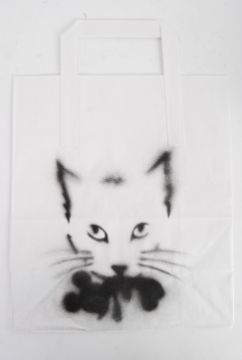 GRAFFITTI: An original Dismaland Gift bag, with spray graffiti to front depicting a cat with Mickey Mouse in his mouth. To the underside of the bag is also a sprayed ant eater motif. Allegedly obtained from Dismaland as part of a hidden ' Free Art ' notion. Various pieces of artwork would be hidden around Dismaland for members of the public to find and keep. Pieces were few and far between, and were allegedly done by Banksy and other exhibiting artists, although Pest Control refute this. NOTE: From a private collection of Dismaland / Banksy and related items. Some of which were obtained directly from Dismaland, or directly from the artist(s) associated. Where something is listed as possibly Banksy buyers are reminded to satisfy themselves as to originality, condition and authenticity, and no artwork comes with authentication or any guarantee implied or given. Provenance, where given, is there for reference or guide only. The vendor will be donating an amount of the proceeds raised in this sale to a local Bristol homeless charity.