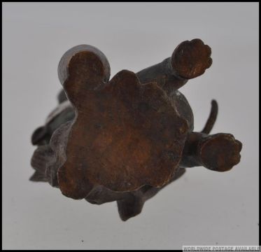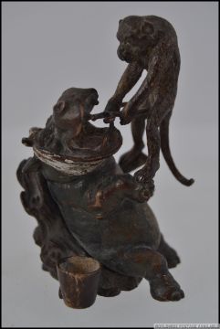 A cold painted bronze of a monkey pulling a tooth from a hippo L7cm