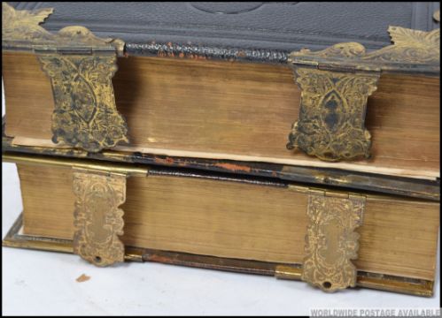 A late 19th / early 20th century Rev. John Brown gilt tooled bible, along with a Rev John Eadie similar antique bible.