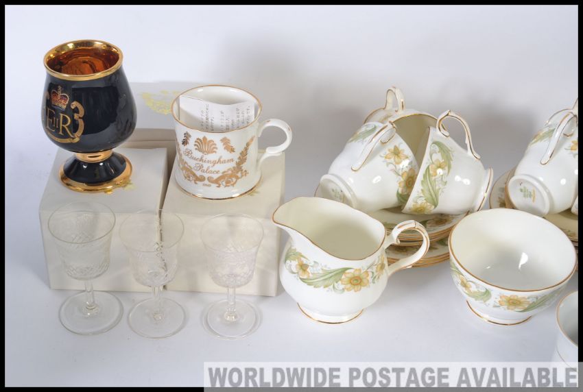 A Duchess part tea service along with three boxed Buckingham Palace cups