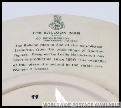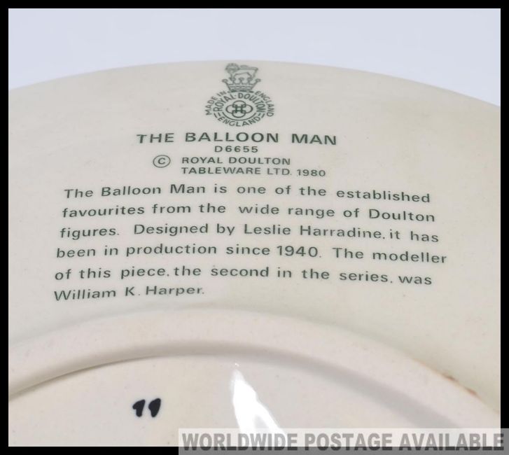 2 Royal Doulton plates one being ' Balloon Man ' plate D6655 together with The Old Balloon seller D6649. Both marked to verso